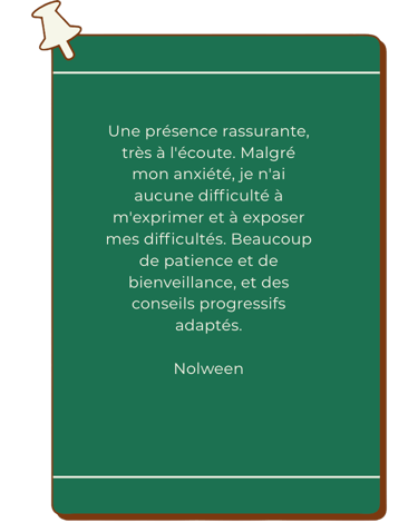 Je conçois l'espace thérapeutique comme celui d'une co-construction. C'est un travail d'équipe dans lequel nous mêlons nos deux expertises pour avancer ensemble vers un mieux-être durable.